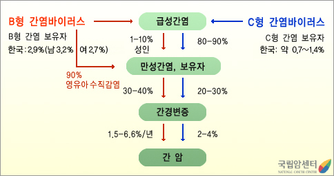 우리나라 성인 중 B형 간염바이러스 보유자가 과거의 10%에서 3% 이내로 줄었고, 10세 이하의 연령층에서는 1% 미만으로 나타난 만큼, 향후 B형 간염바이러스에 의한 간암의 발생은 점차 감소할 것으로 보입니다.