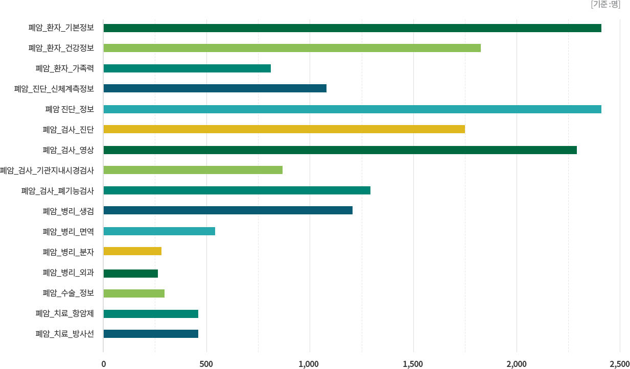 폐암 레지스트리 항목 – 항목명, 항목수 정보 제공
