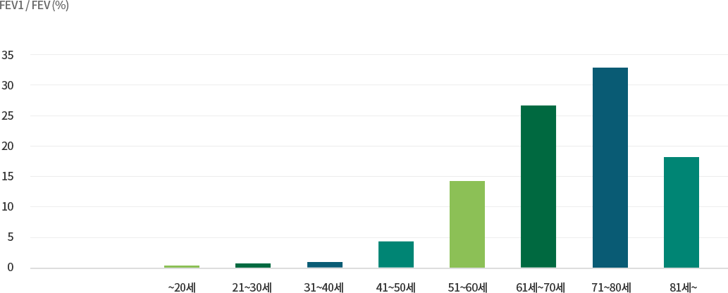연령별 폐기능검사 (Pulmonary Function Test) 폐활량 평균값 분포