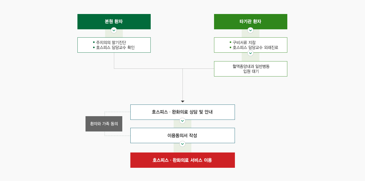 - 통증 완화 및 증상 관리룰 필요로 하는 환자