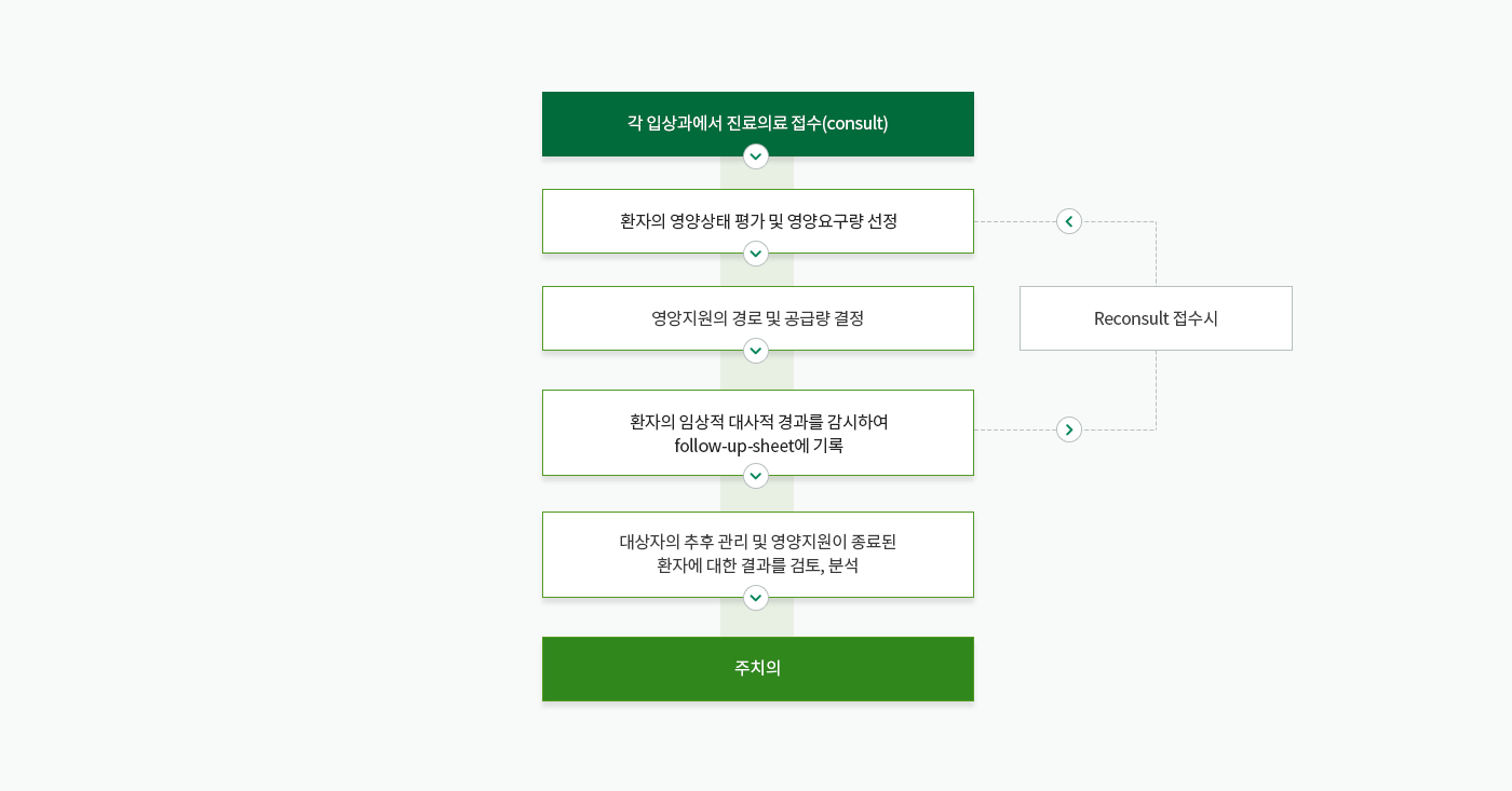 관리함으로써 안전하고 효과적인 영양지원을 통해 영양상태를 개선해 환자의 영양학적 삶의 질을 높이고자 합니다.