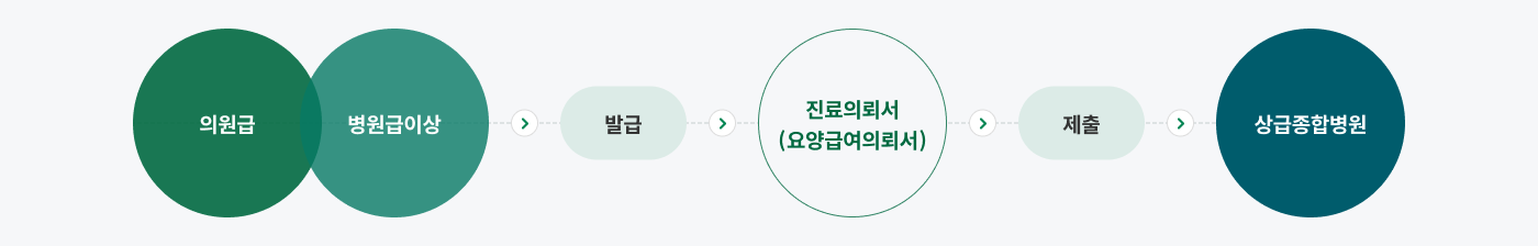 해당되는 의료기관에서 발급한 진료의뢰서(요양급여의뢰서) 원본을 제출하셔야 건강보험/의료급여 혜택을 받을 수 있습니다.